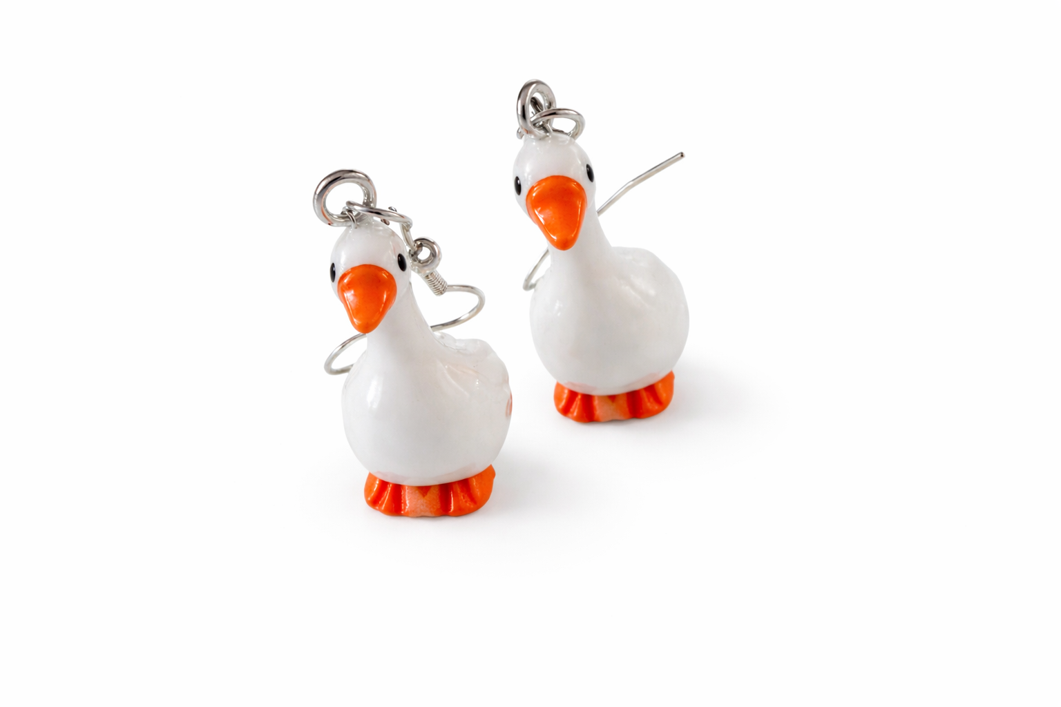 Söta och unika örhängen som verkligen sticker ut! Dessa små ankor med glansig finish och orange näbb ger din look en lekfull och personlig touch. Lätta, bekväma och perfekta för både vardag och
