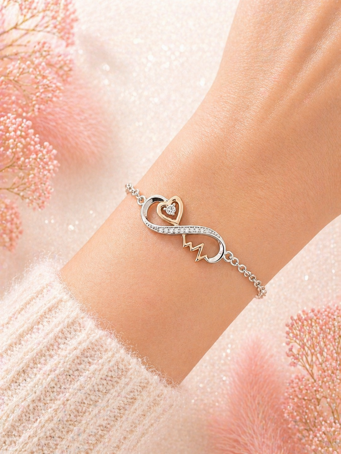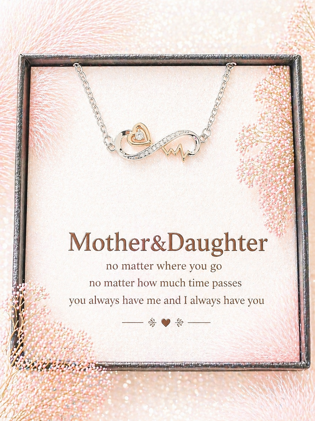 Ett vackert och känslosamt halsband som symboliserar det starka bandet mellan mamma och dotter. Den eleganta evighetssymbolen tillsammans med hjärtat och den gnistrande stenen står för kärlek som aldrig tar slut – oavsett tid eller avstånd.