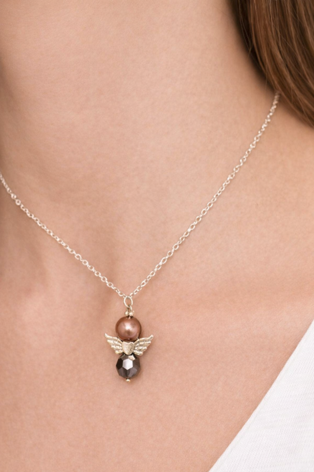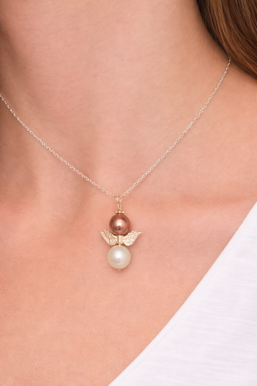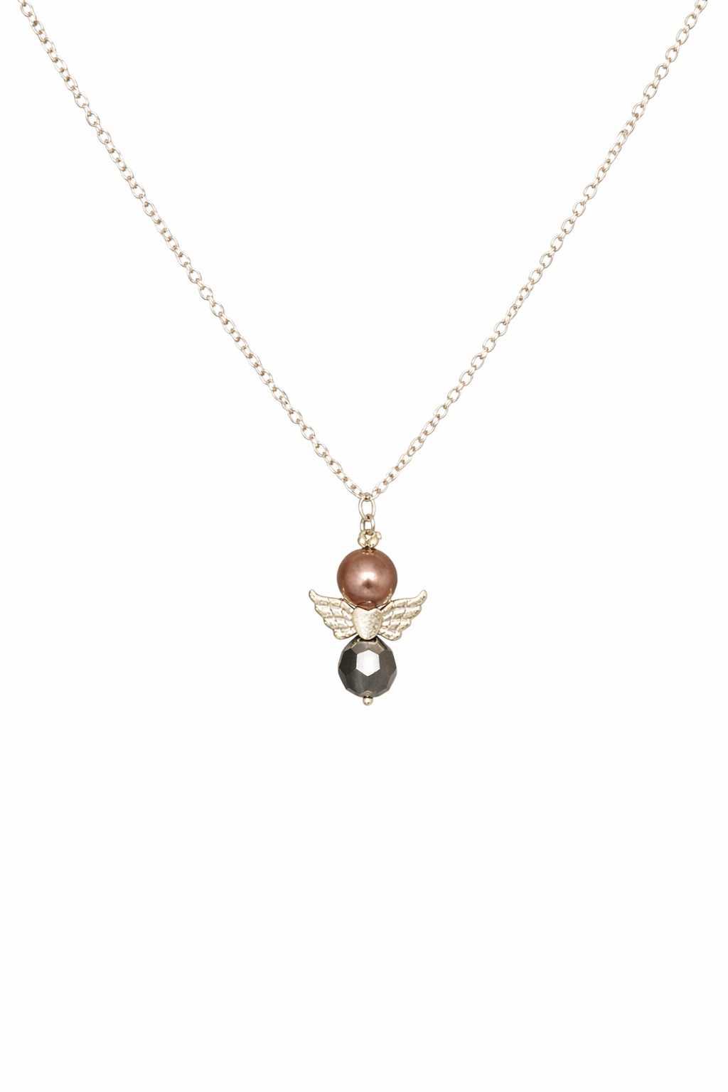 Ett elegant halsband med ett vackert ängelmotiv som symboliserar skydd, kärlek och omtanke. Den lilla ängeln med pärldetaljer och gnistrande inslag ger halsbandet ett mjukt och tidlöst uttryck som passar till alla tillfällen.