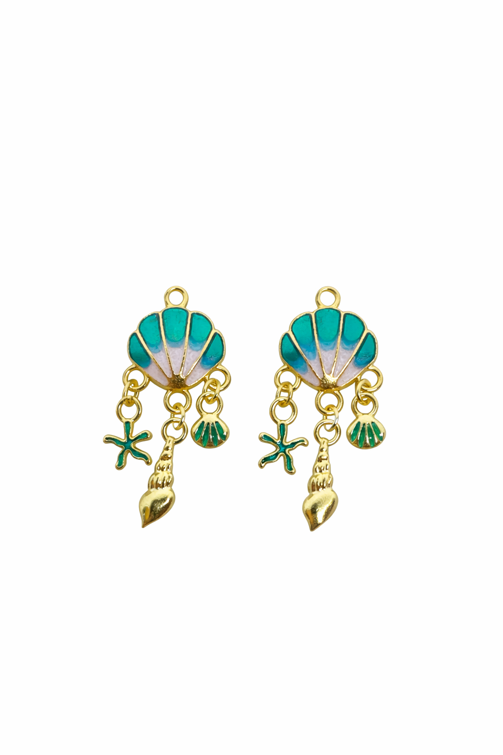 Eleganta örhängen med snäckor och havsinspirerade detaljer i guld och turkos. Dessa unika örhängen förmedlar en känsla av sommar, strand och hav och är perfekta för dig som älskar marina smycken med en lekfull men stilren design.