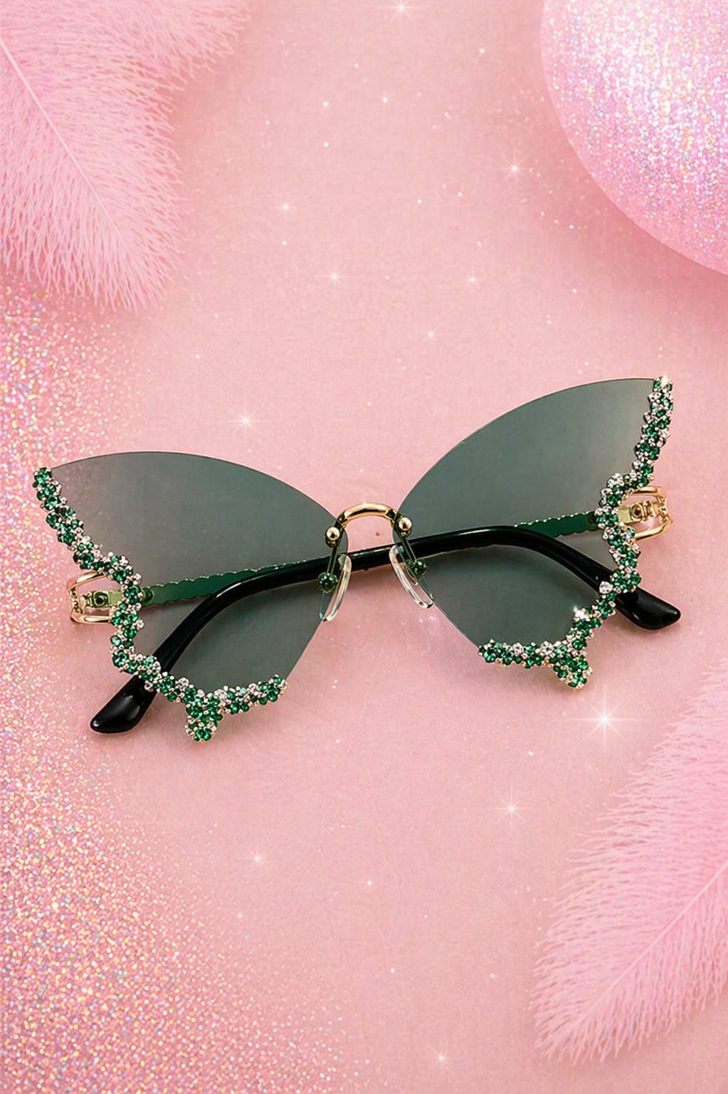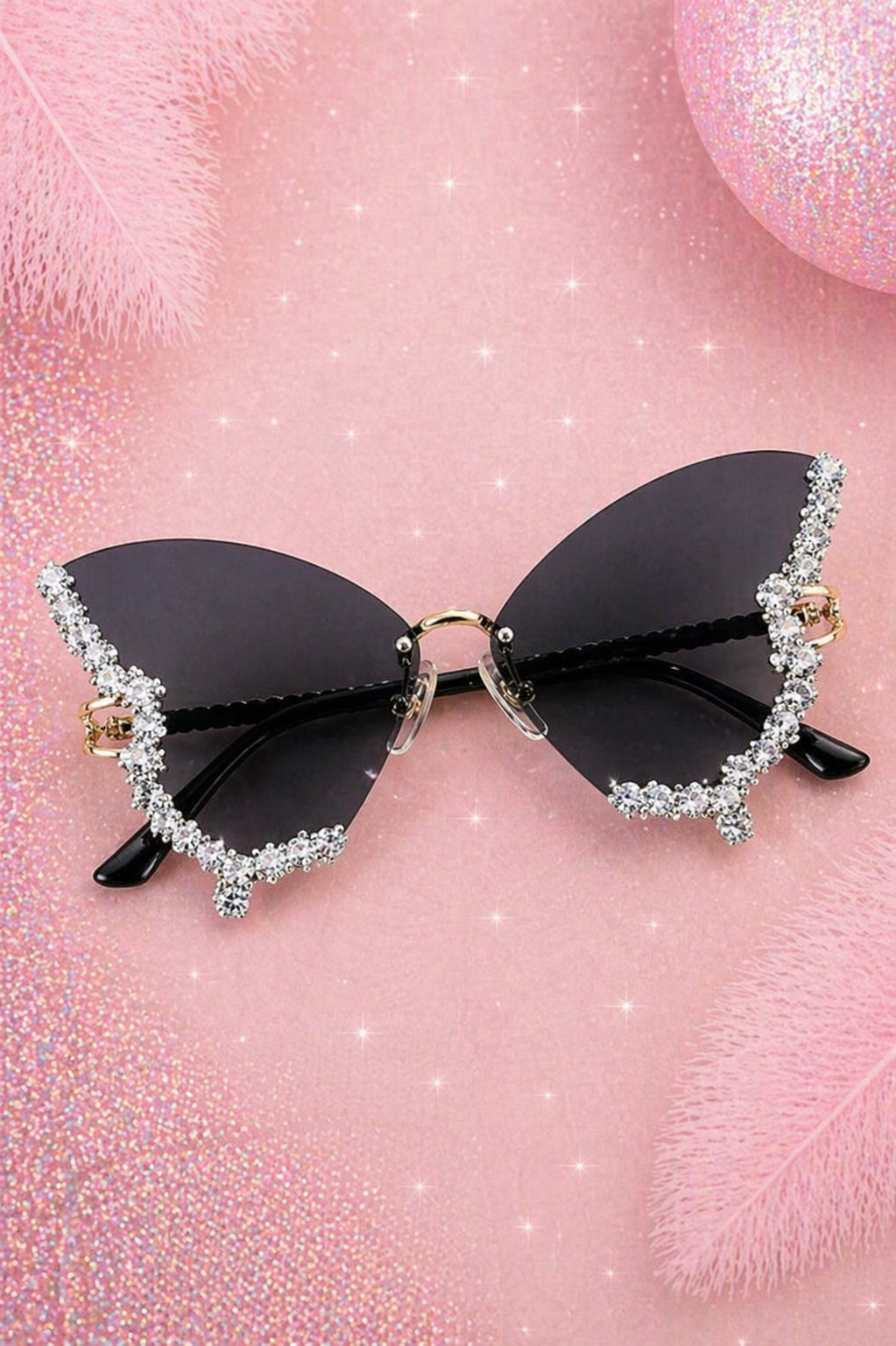 Exklusiva solglasögon med en dramatisk, modern silhuett och gnistrande detaljer som fångar ljuset från varje vinkel. Den mörka linsen tillsammans med de kristallinspirerade dekorationerna skapar en perfekt balans mellan elegans och statement.